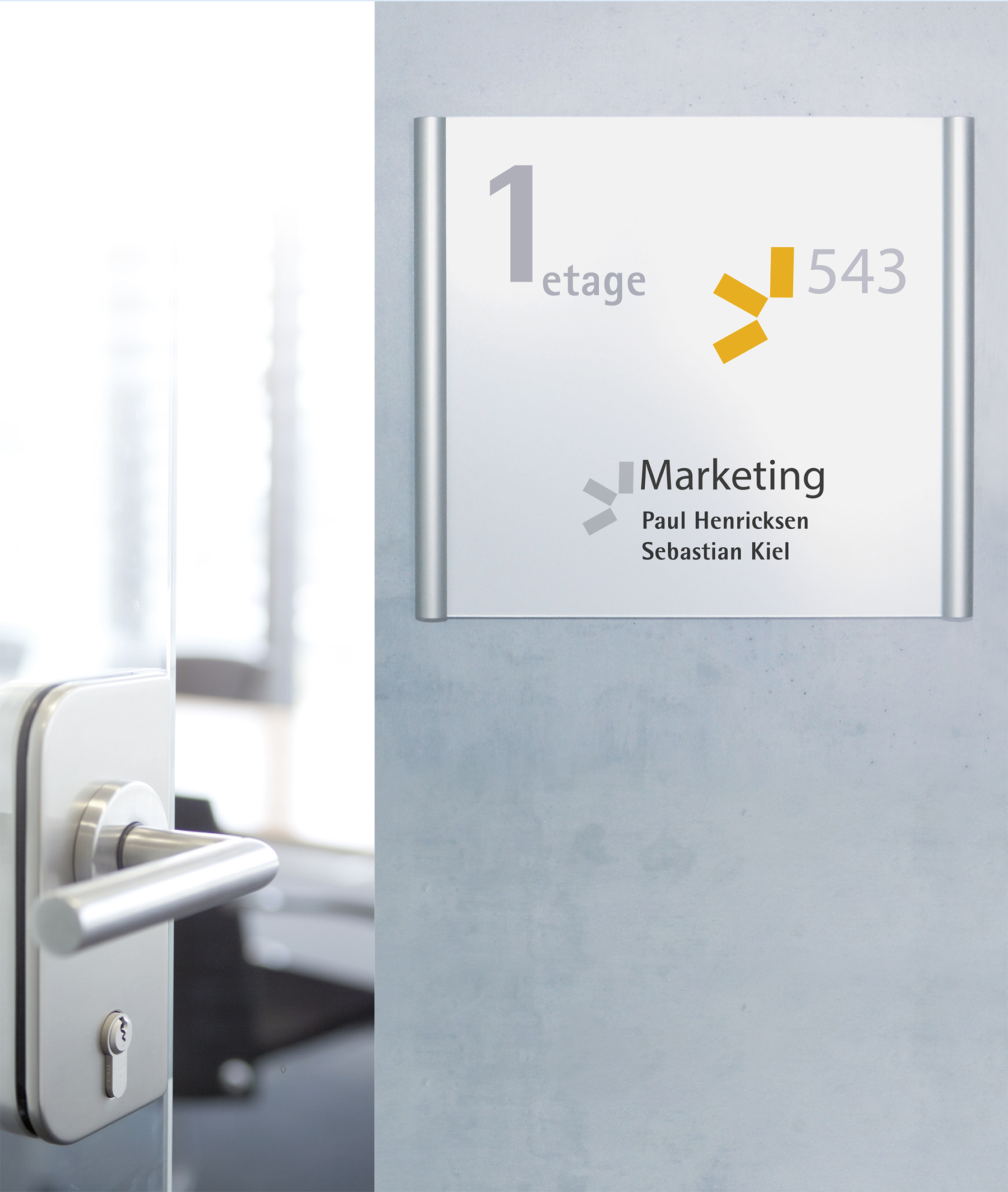 ... with a visible width of 200 mm when occupancy plans, extensive information or large, easily recognizable lines of text are to be displayed. The large format enables inscription inserts in DIN A4 width. Based on simple, geometric basic shapes, the rohr+fläche door sign has become a classic. The original since 1991 has been awarded numerous design prizes.